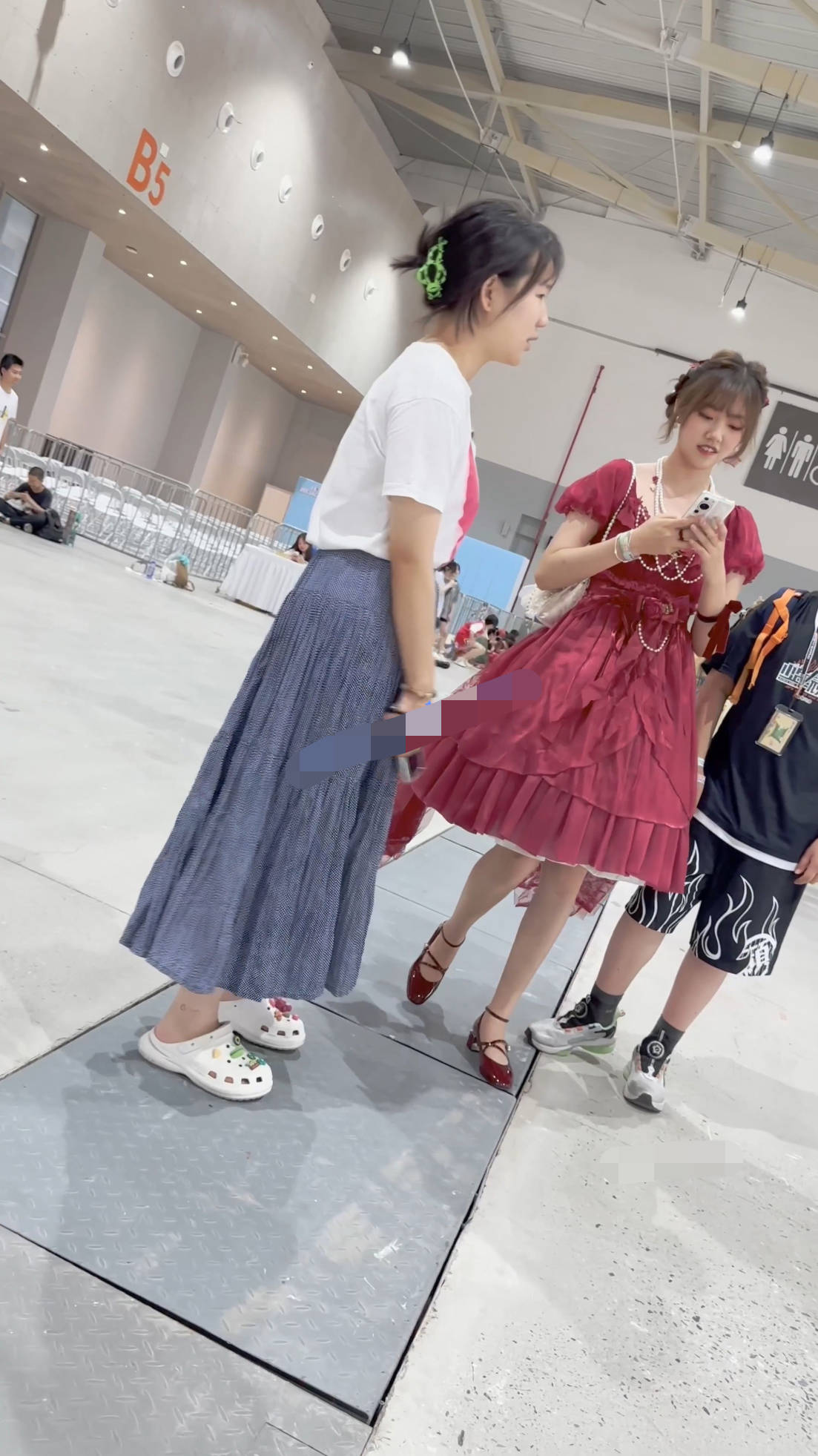 【KFC】学生妹跟着妈妈弟弟逛街·红色长裙白色一次性内微透
