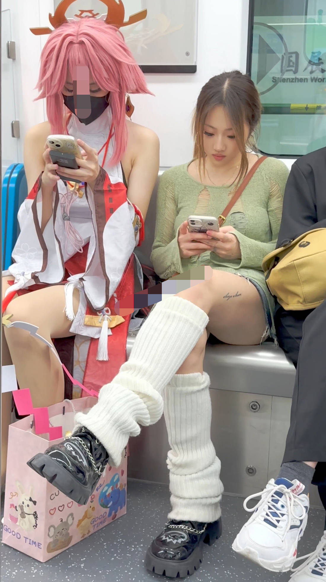 【KFC】露背装学生妹和闺蜜逛街·过膝袜灰色窄内骚气外露